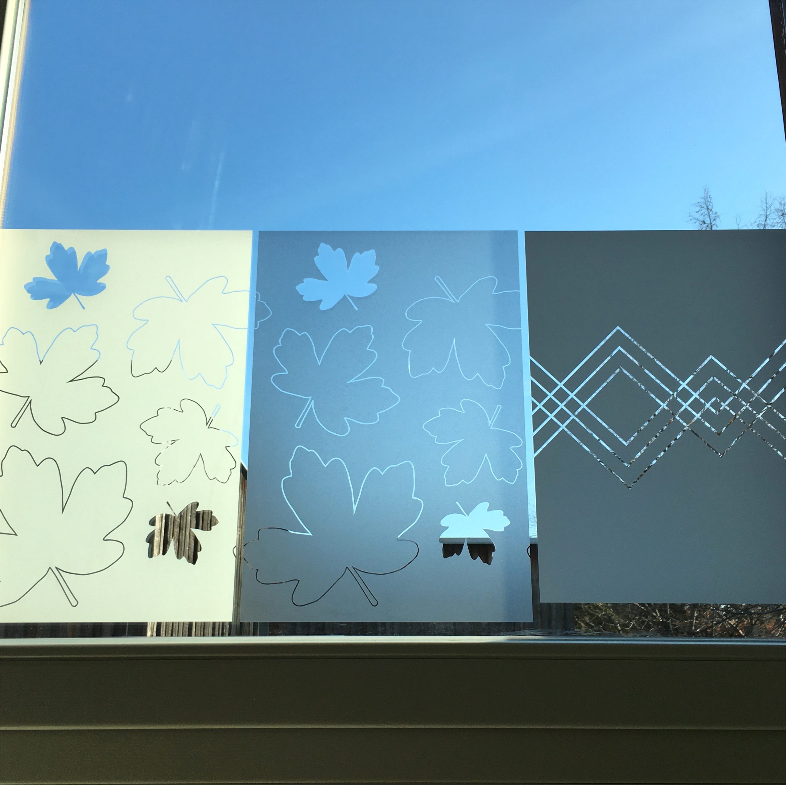 Und hier ist noch ein Foto von Proben zwei der neuen Motive in unterschiedlichen Lichtverhältnissen.